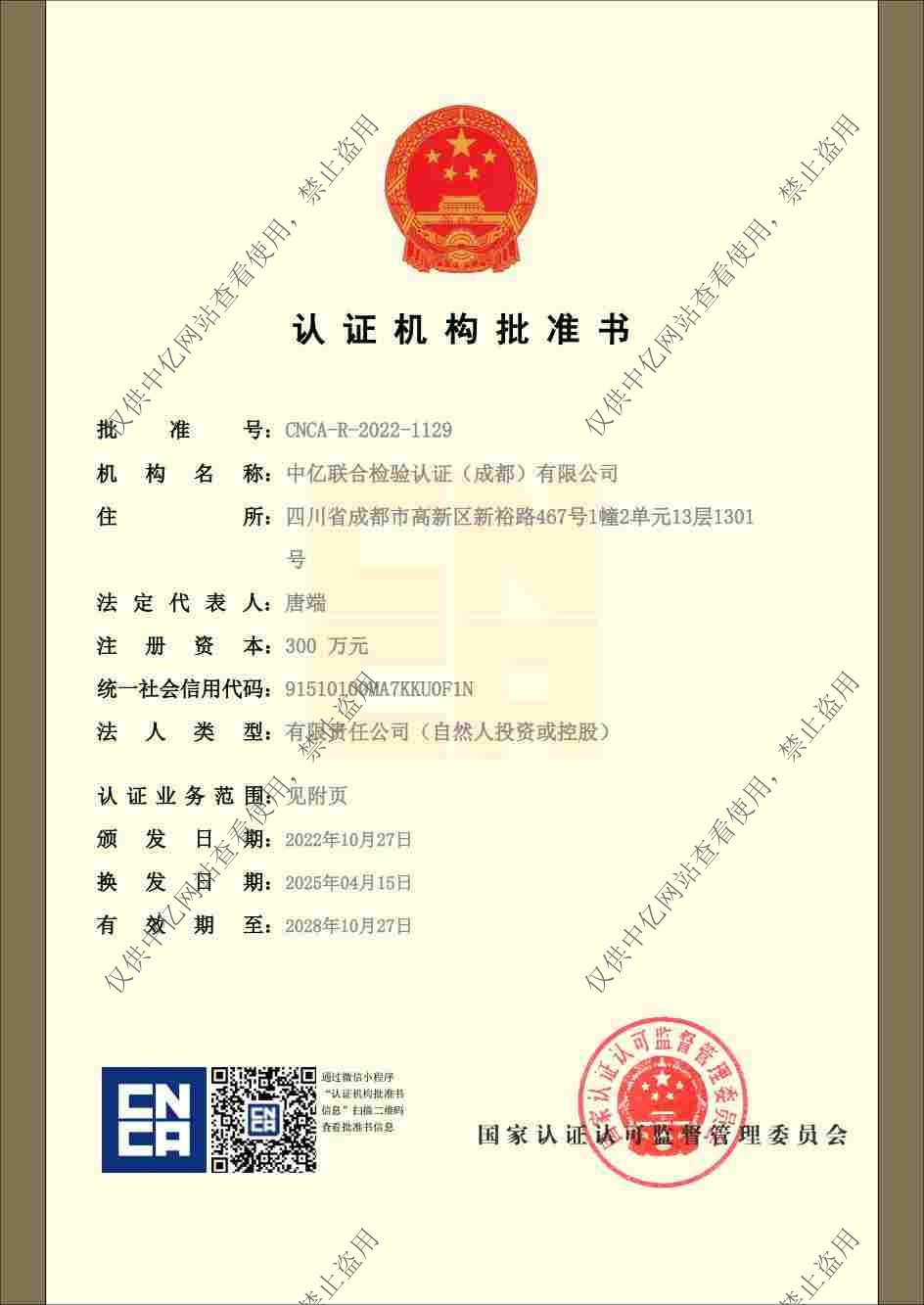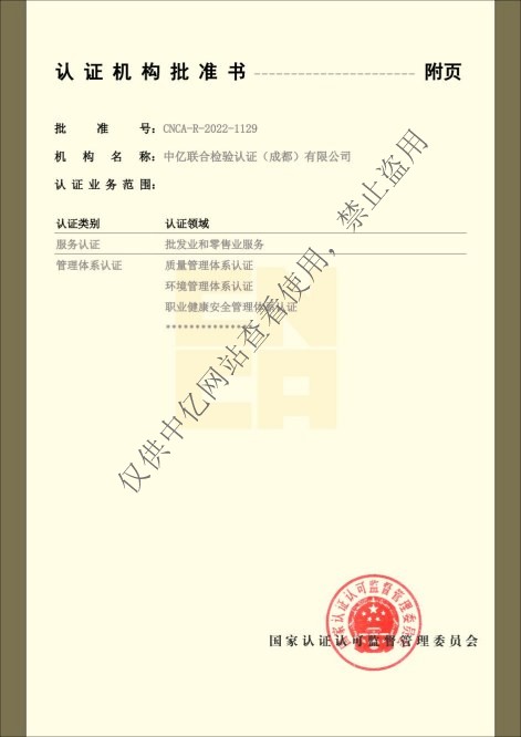 中亿联合检验认证(成都)有限公司将以诚信、务实为根基,以“传递信任、服务发展”为己任,不断开拓创新,增加新的认证服务领域,以建立一个合作共赢的技术服务平台,为推动我国认证事业的积极健康发展奉献一份光和热!